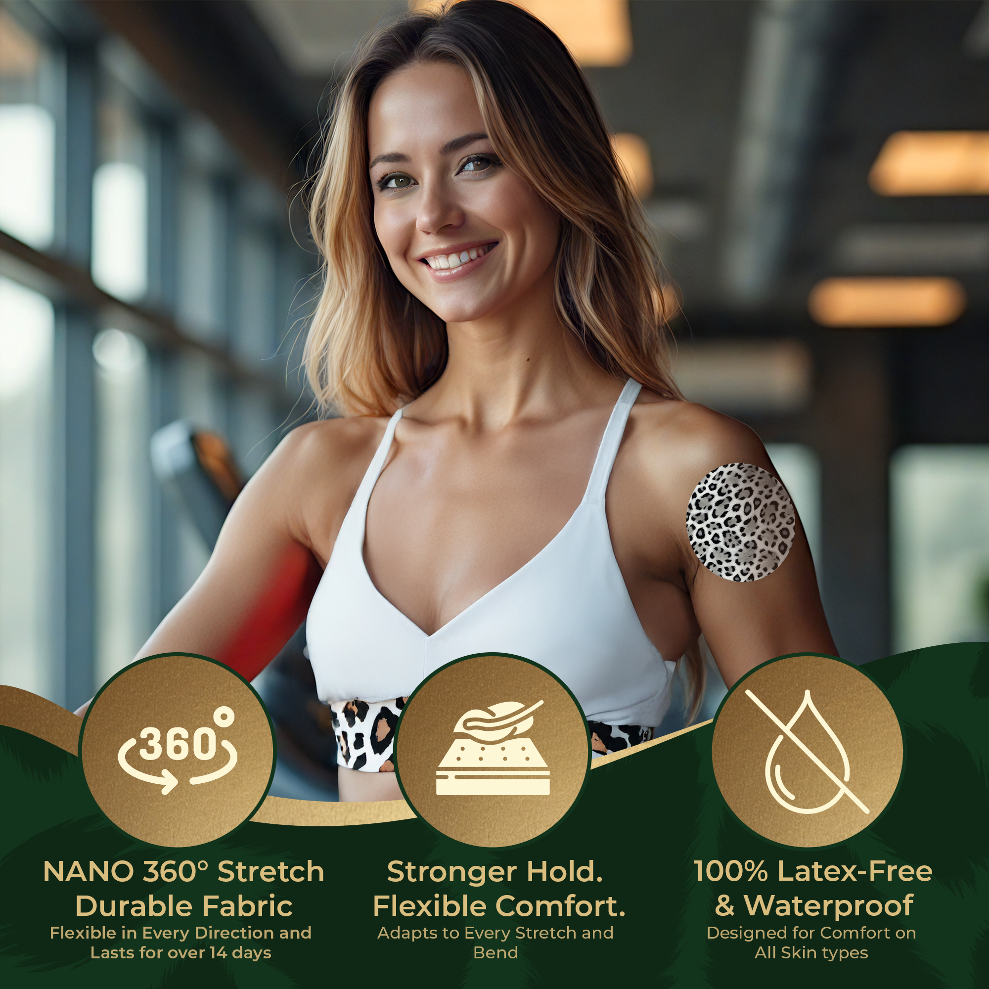 Superior to cotton, rayon, latex and other materials, DERMAPATCH® Waterproof CGM Adhesive Patches are made from premium non-woven fabric.